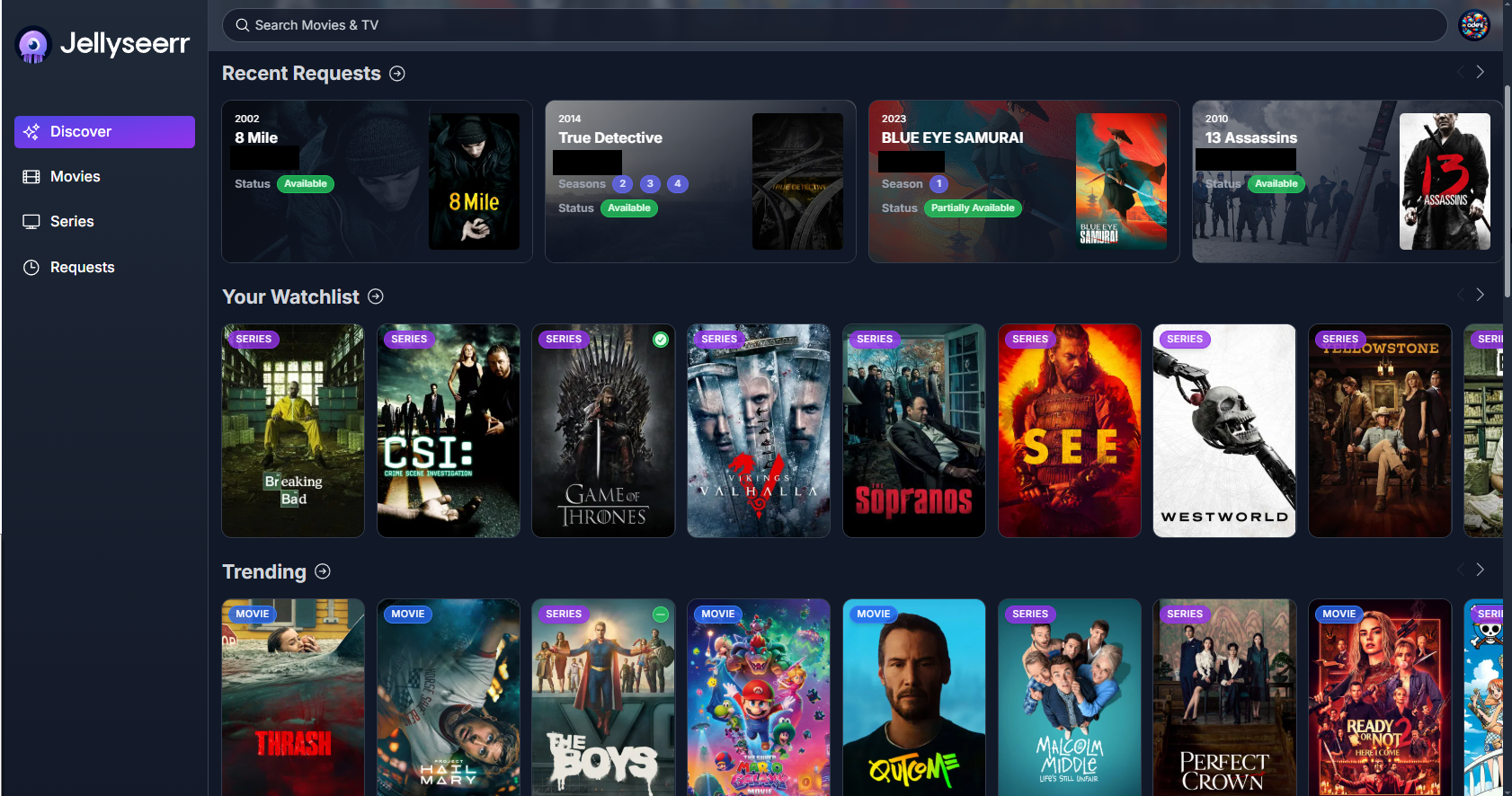 Jellyseerr Home Page