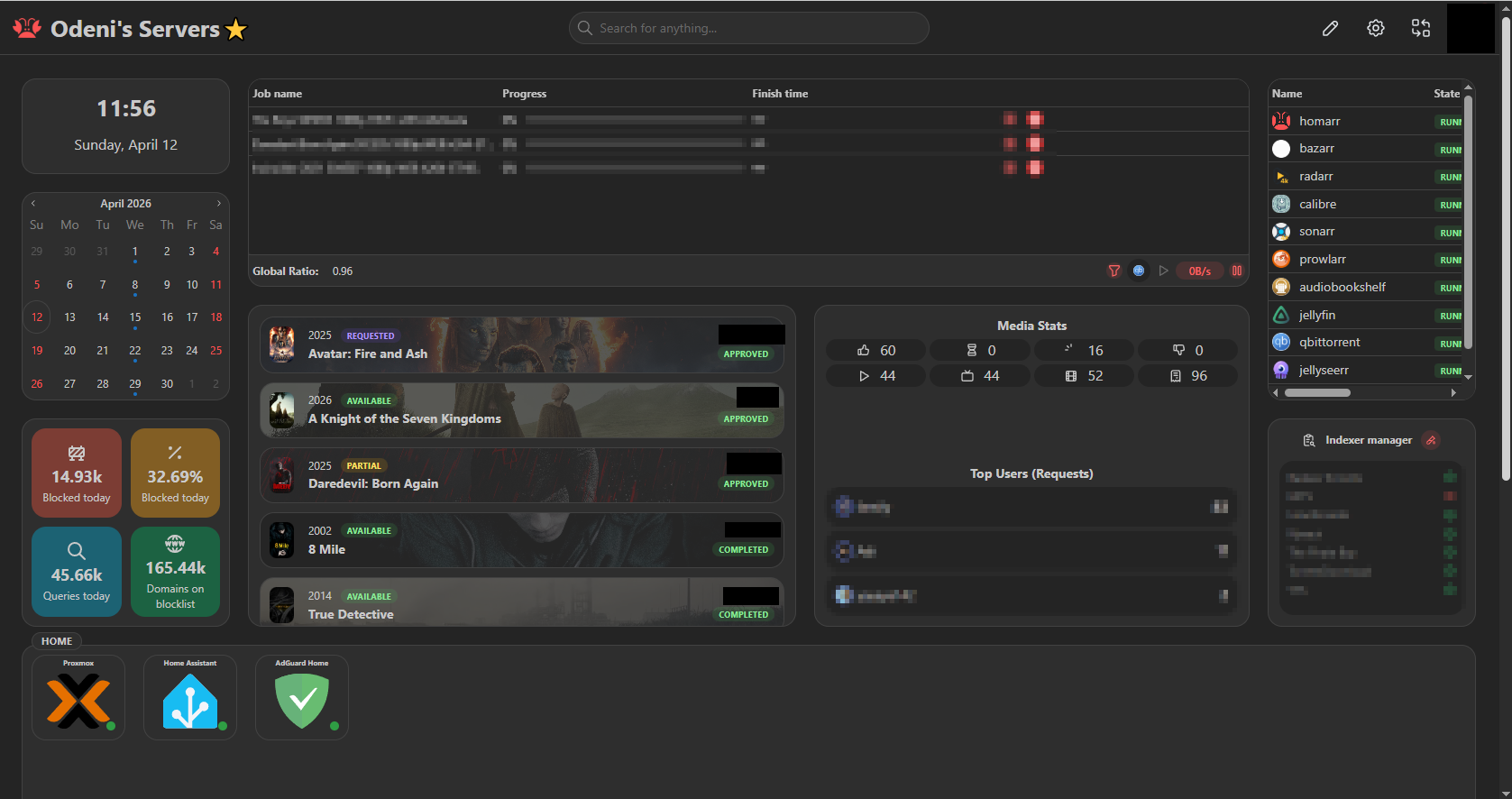 - Homarr - the dashboard for the entire home lab. It sits in this VM but serves everything. Instead of remembering IP addresses and ports for every service, Homarr gives you one clean interface with all your apps in one place. It also integrates directly with the services running behind it - showing real-time status, active downloads, and other live data - not just shortcuts.